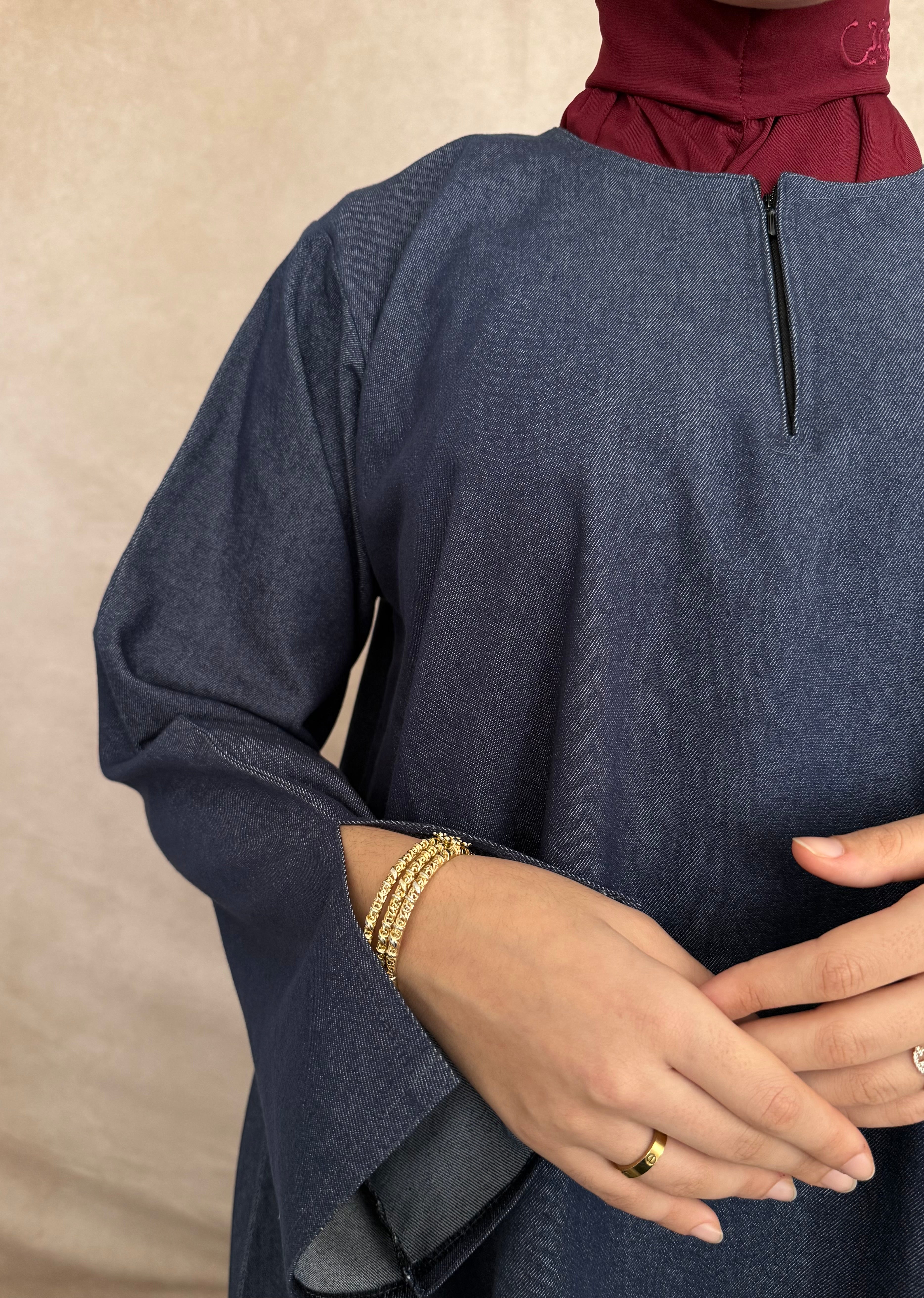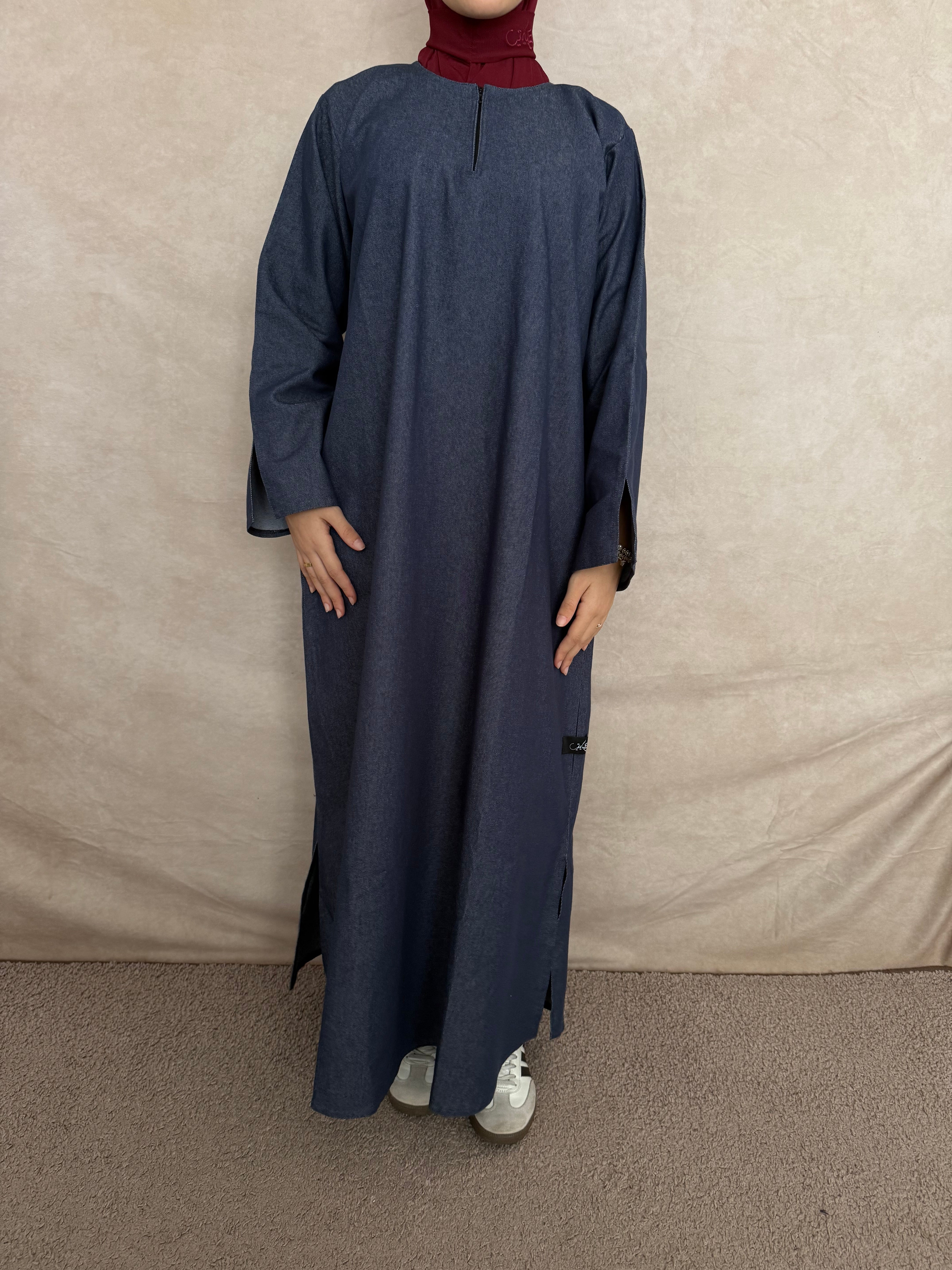 Cette abaya en jean est une création spéciale Abayati Shop, pensée pour allier élégance, modernité et confort.